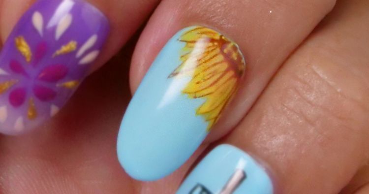 If you love flowers, you’ve probably painted more than a few on your nails. Sunflowers look complicated, but they’re fairly easy to paint once you know the tricks. Adding this cheerful beauty to a light blue nail is an alluring way to show off this summer flower.