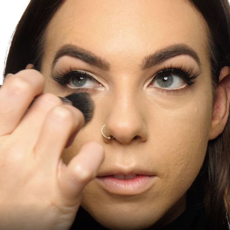 12. Pat loose powder below your eyes and on the other concealed areas with a powder brush.