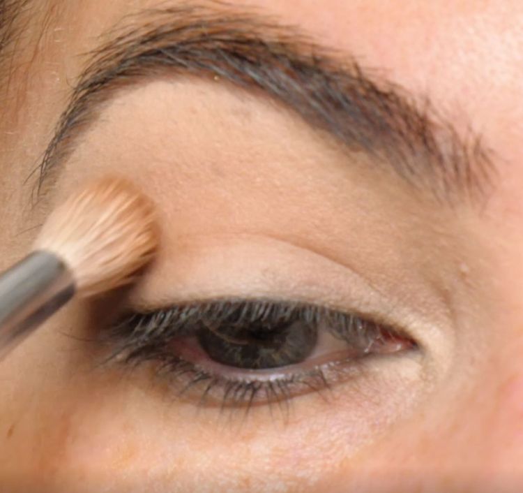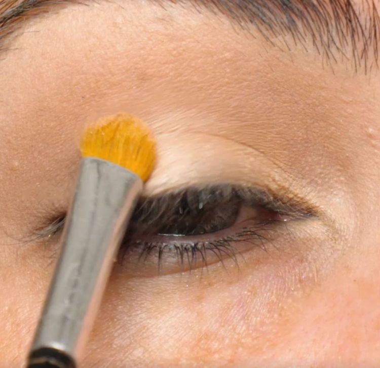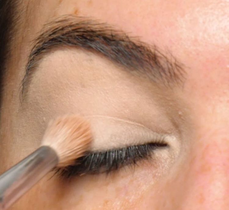 2. Sweep cream-colored eye shadow over the entire eye area with the fluffy blending brush.