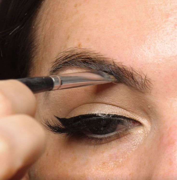8. Sculpt and define your brows by brushing brow cream through them with an angled brow brush.