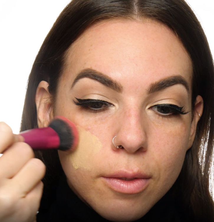 10. Apply foundation to your face, and work it into your skin in patting motions with a foundation brush.