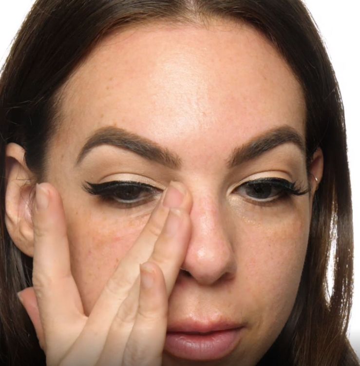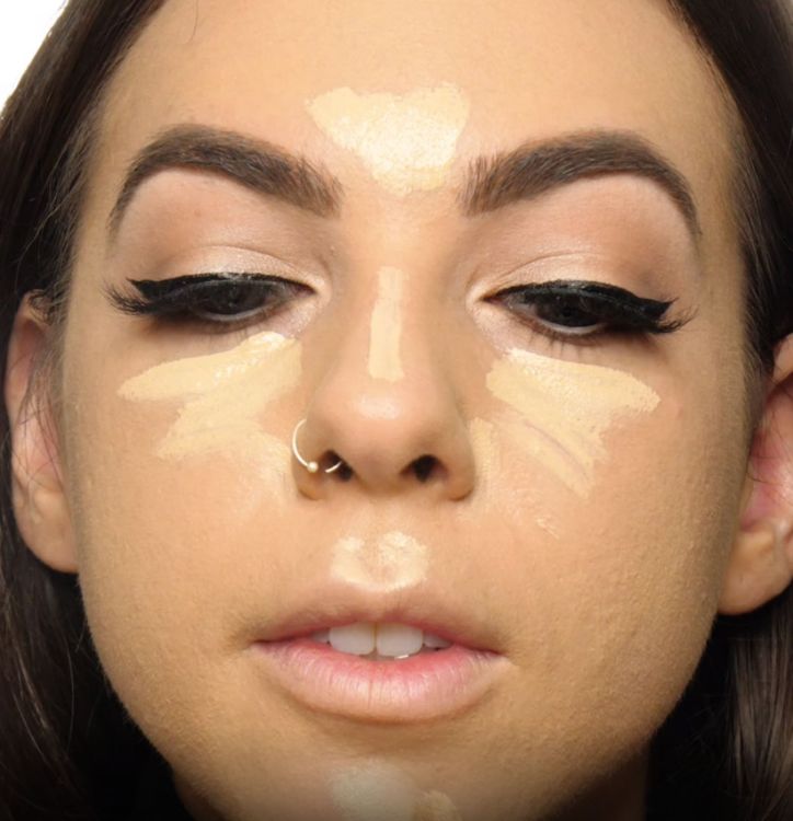 11. To cover discoloration in the undereye area as well as brighten the center of your forehead, nose, cupid’s bow and chin, apply concealer with the applicator wand, and then use a flat-topped brush to buff the product into your skin.